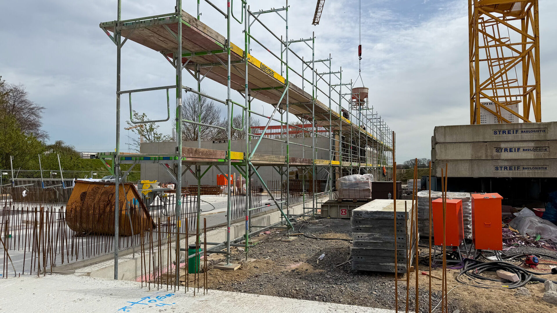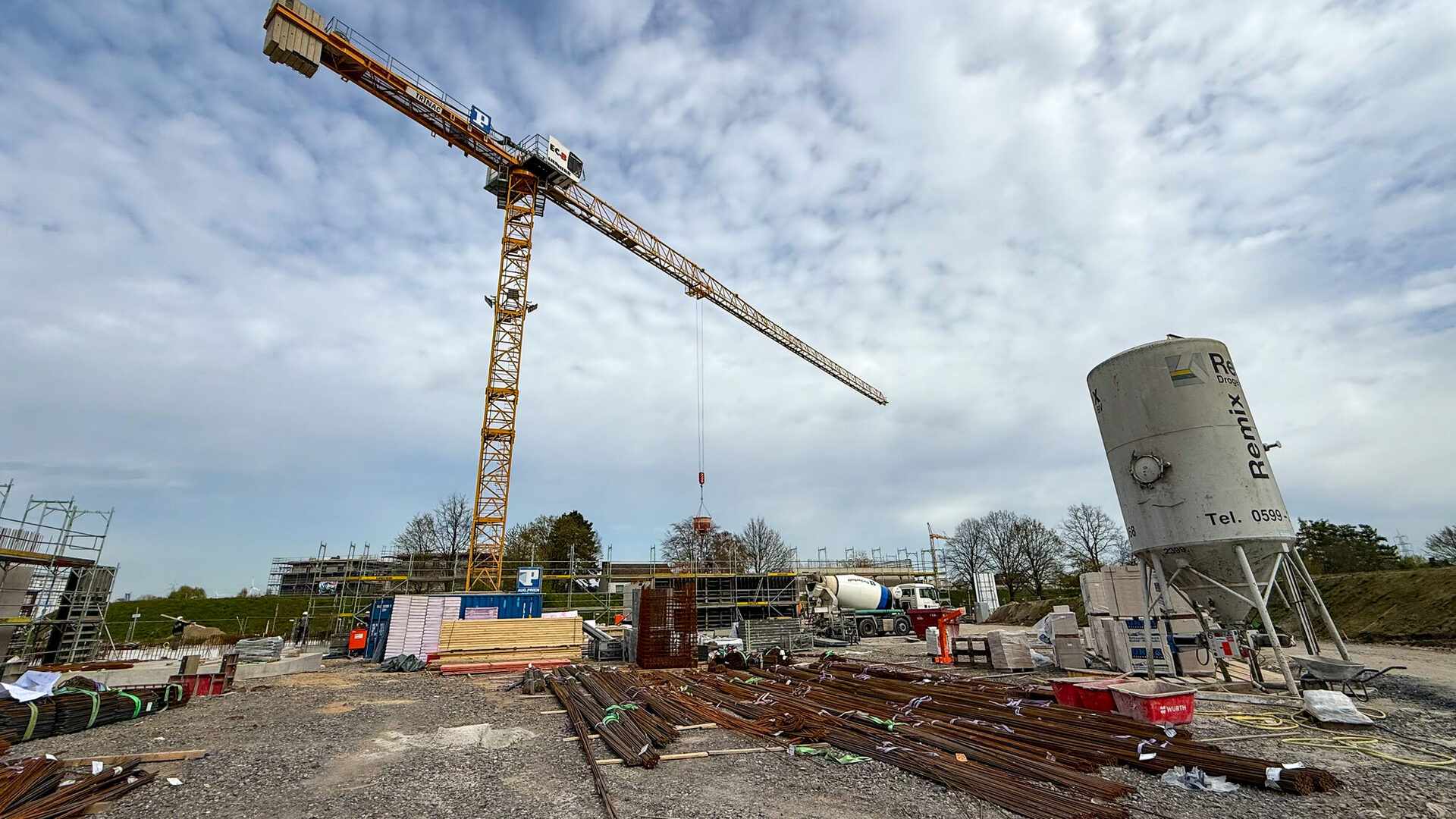 Wofür dient der Kran auf der Baustelle?