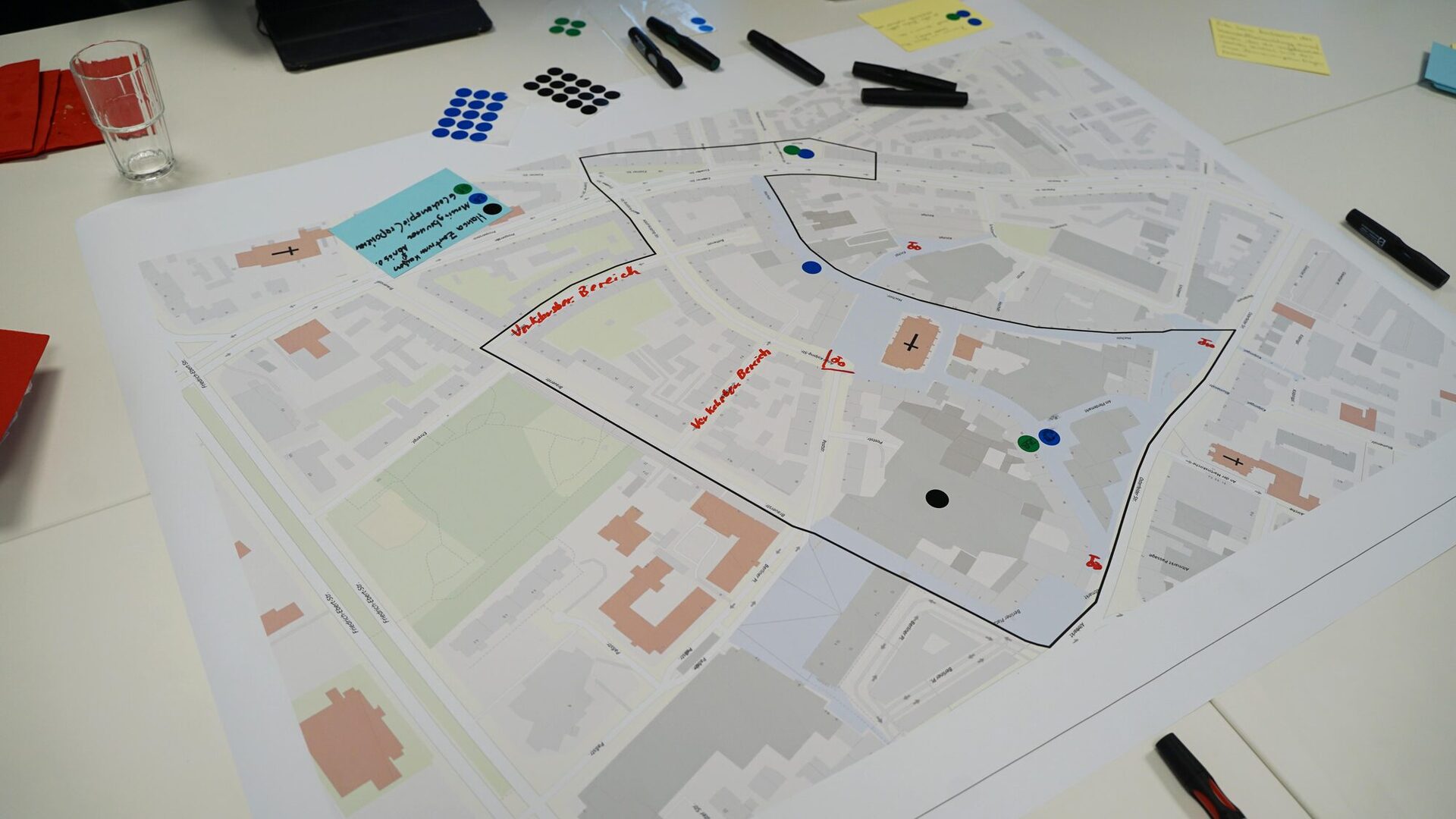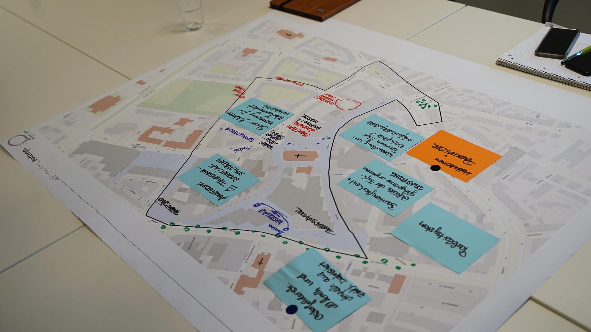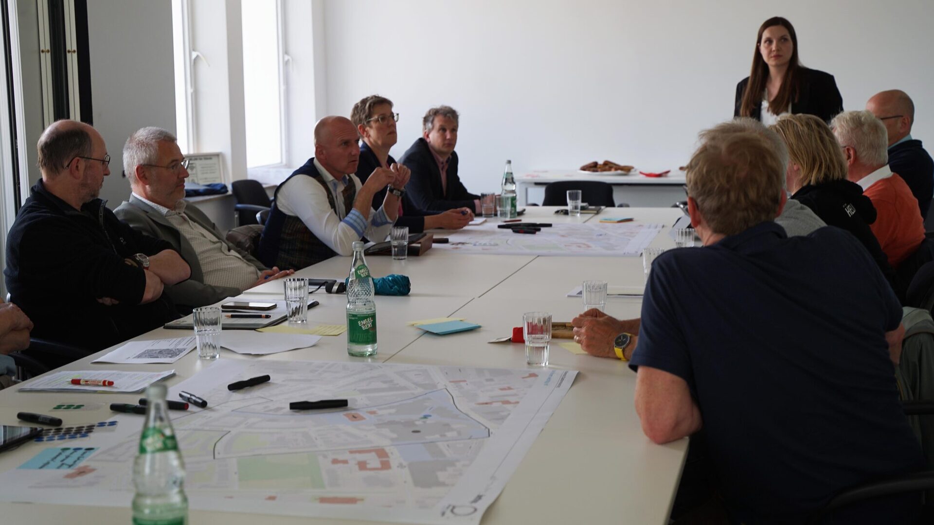 Nach dem Auftakt auf dem Stadtfest fand am vergangenen Dienstag (11. Juni) ein Treffen mit Vertreterinnen und Vertretern der Verbände und Interessengemeinschaften der Innenstadt statt. In einem konstruktiven Austausch wurden gemeinsam mit Mitarbeitenden der zuständigen Fachdienststellen Ideen und Maßnahmenvorschläge zur Aufwertung der Innenstadt diskutiert und auf Plänen konkret verortet.