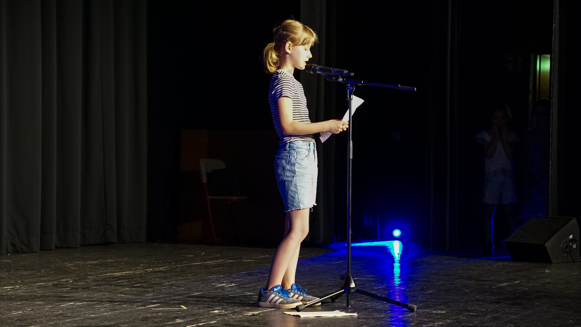 Die Aula war bis auf den letzten Platz gefüllt mit Familien, Freunden und Bekannten, die die Kinder mit großem Applaus unterstützten. Ihre Begeisterung war spürbar – genauso wie die Freude und der Stolz der jungen Talente, die im Rampenlicht standen.