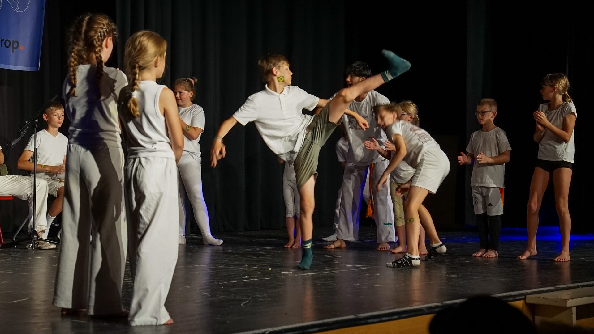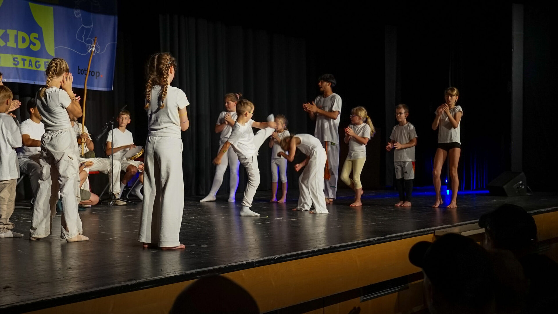 Besonders hervorzuheben ist die enge Zusammenarbeit mit lokalen Vereinen und Kulturschaffenden. So übernahm unter anderem die Tanzschule Frank die Leitung des Tanz-Workshops, während der Capoeira-Verein aus Duisburg mit großer Leidenschaft die gleichnamige brasilianische Kampfkunst vermittelte. Auch das Theaterstück wurde unter Anleitung von Jörg Wilms, ein bekanntes Gesicht aus der städtischen Kulturwerkstatt erarbeitet, welcher dort ebenfalls regelmäßig Kurse anbietet. Diese wertvollen Kooperationen ermöglichen nicht nur eine hohe fachliche Qualität der Workshops, sondern bietet den Kindern auch nachhaltige Einblicke in die Bottroper Vereins- und Kulturlandschaft – und schafft eine wichtige Brücke für die Nachwuchsgewinnung.