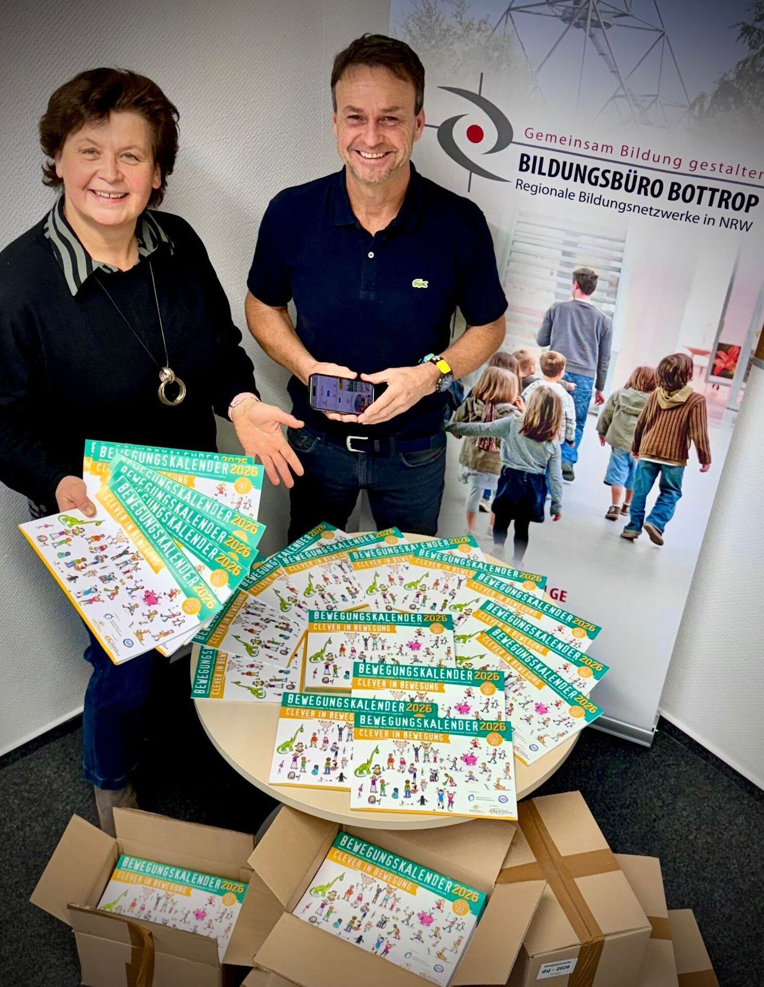 Das Regionale Bildungsbüro Bottrop hat erstmals die Verteilung von rund 600 Bewegungskalendern 2026 der Deutschen Sportjugend an alle Bottroper Kitas und Grundschulen organisiert. Jede Gruppe und jede Klasse erhält in diesen Tagen ein Exemplar, um den Kindern tägliche Bewegungsimpulse und spielerische Aktivierungsphasen zu ermöglichen.