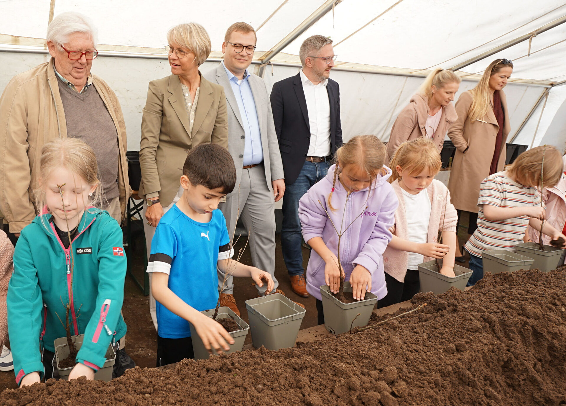Seit bald 30 Jahren kommen die Bottroper Erstklässler zum WPZ, um Setzlinge zu pflanzen. Bis zum Ende ihrer Grundschulzeit werden sie die Entwicklung ihrer Pflanzen beobachten und schließlich in einen Wald auspflanzen. „Wenn die Kinder die Schule wechseln, wechseln auch die Bäume den Standort. Das ist eine tolle Idee“, lobt Ministerin Feller die Aktion, die von ehrenamtlichem Engagement getragen wird. „Die Kinder sind alle Mühe wert. Sie müssen schließlich künftig die Geschicke der Welt lenken“, so Feller.