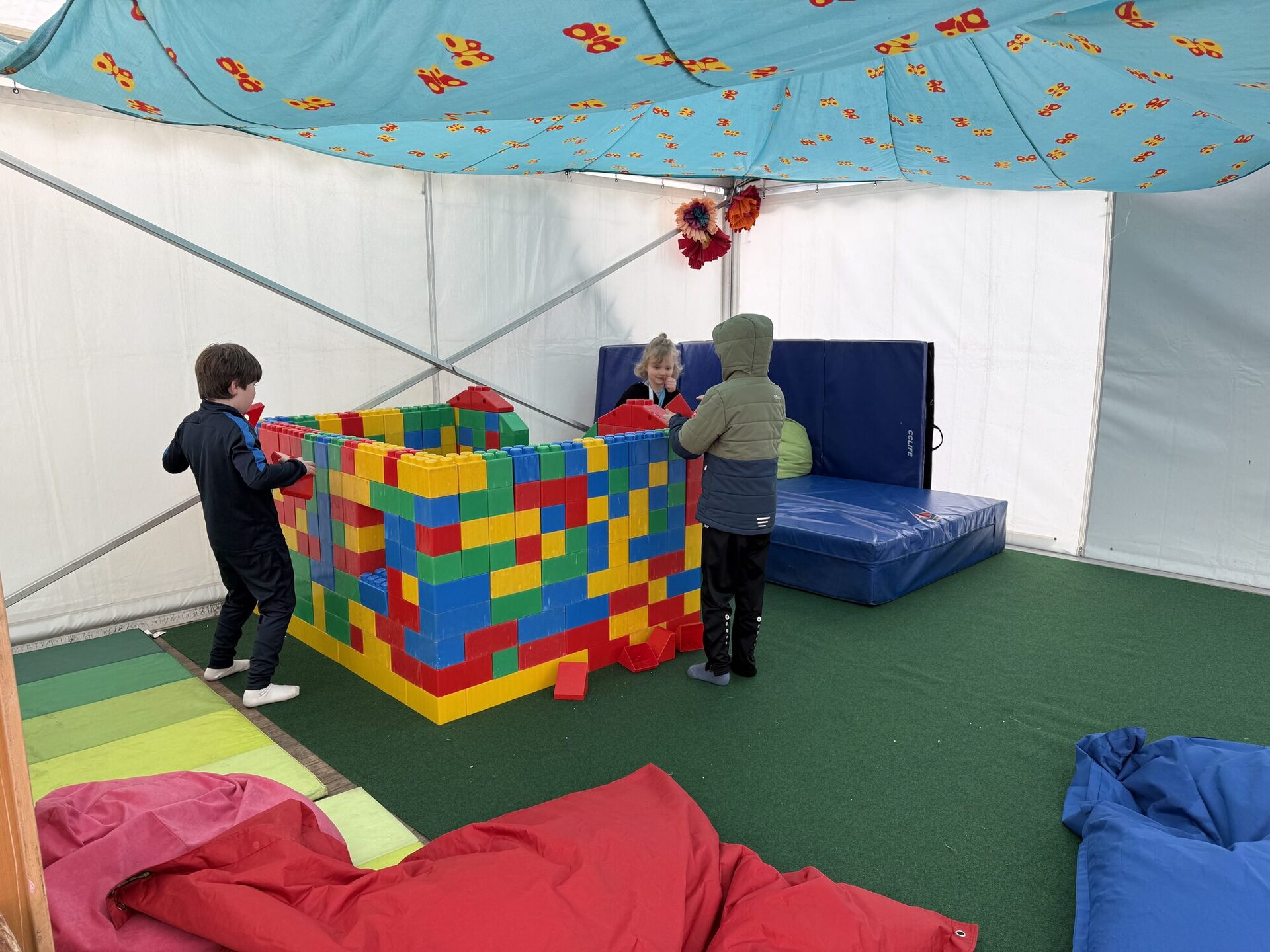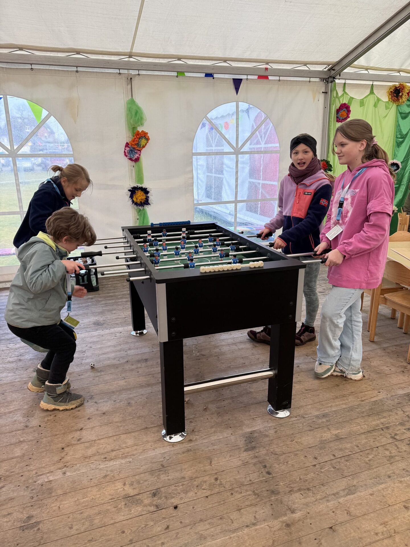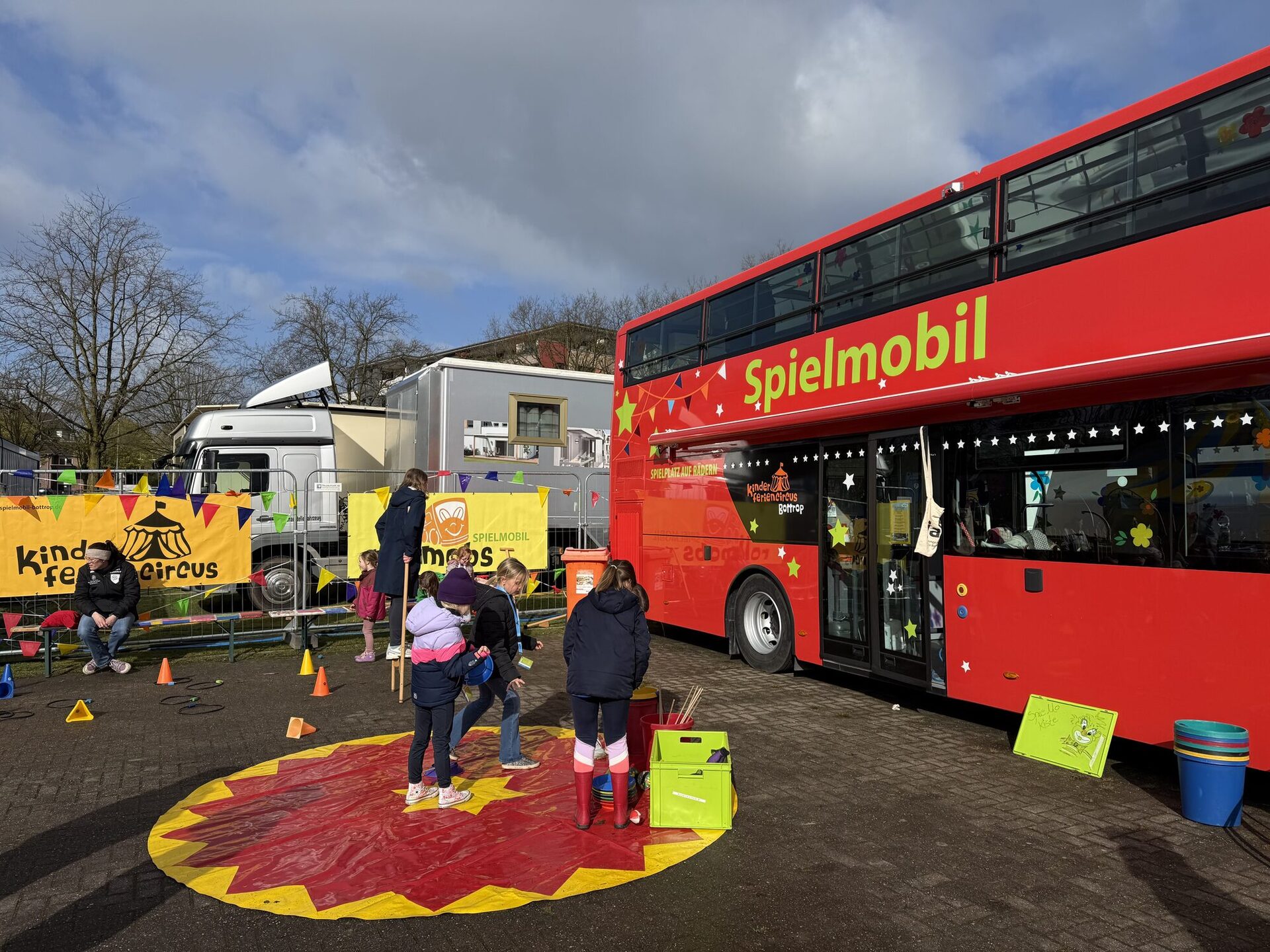 Am Montagmorgen (30.03.) um 10 Uhr sollte es auf dem Josef-Terwellen-Platz losgehen, doch die Manege war dunkel und die Zelte waren kalt. Der Strom war ausgefallen. Während die Elektriker den Fehler behoben, nutzten die Kinder die Zeit, um das umfangreiche Rahmenprogramm des Spielmobils zu testen. Draußen wurde beispielsweise auf Stelzen gelaufen und Badminton gespielt, während im großen Kreativzelt gebastelt, gelesen und geschminkt wurde. Das Angebot des Spielmobils sorgt in der Woche für kreative Abwechslung neben dem artistischen Training. Auch Kinder, die nicht am Programm teilnehmen, können zum Spielen vorbeikommen. Nach weniger als einer Stunde war der Stromausfall behoben und die Musik aus der Anlage im Zirkuszelt lockte die Kinder und ihre Eltern herein.