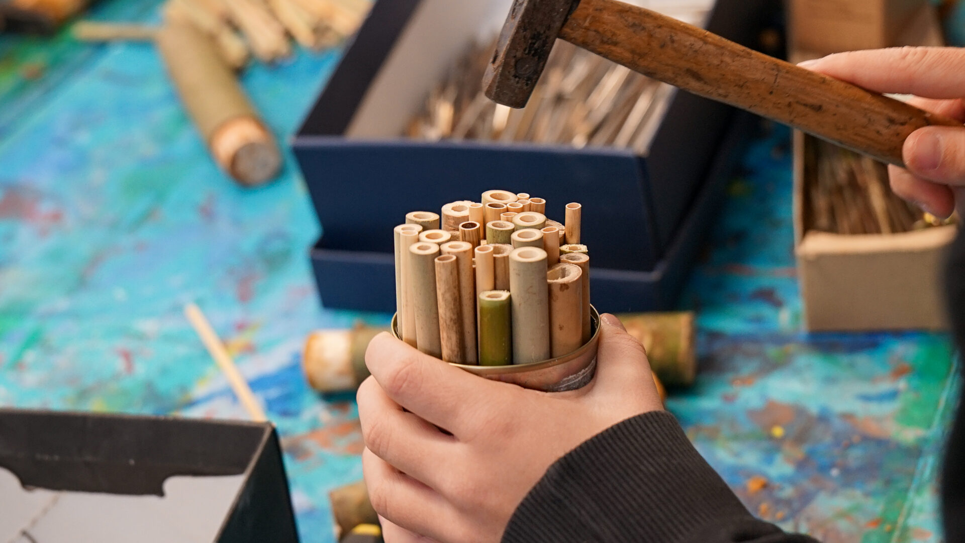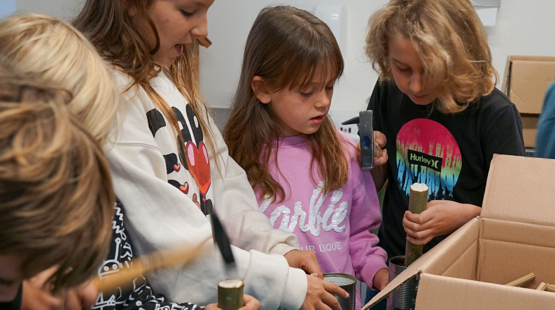 Bereits im Vorfeld des Aktionstags war in Zusammenarbeit mit dem RVR RuhrGrün in der Schreinerei des Waldkompetenzzentrums Heidhof eine große Nistwand hergestellt worden. Diese wurde an der Streuobstwiese am Tappenhof installiert. Am Aktionstag selbst bauten die Schülerinnen und Schüler verschiedene Nisthilfen – darunter Tonsteine, hohle Pflanzenstängel sowie Dosen mit einer Lehm-Löss-Mischung. Diese Elemente sollen im Frühjahr 2026 in die Nistwand integriert werden und unterschiedlichen Wildbienenarten geeignete Nistmöglichkeiten bieten.