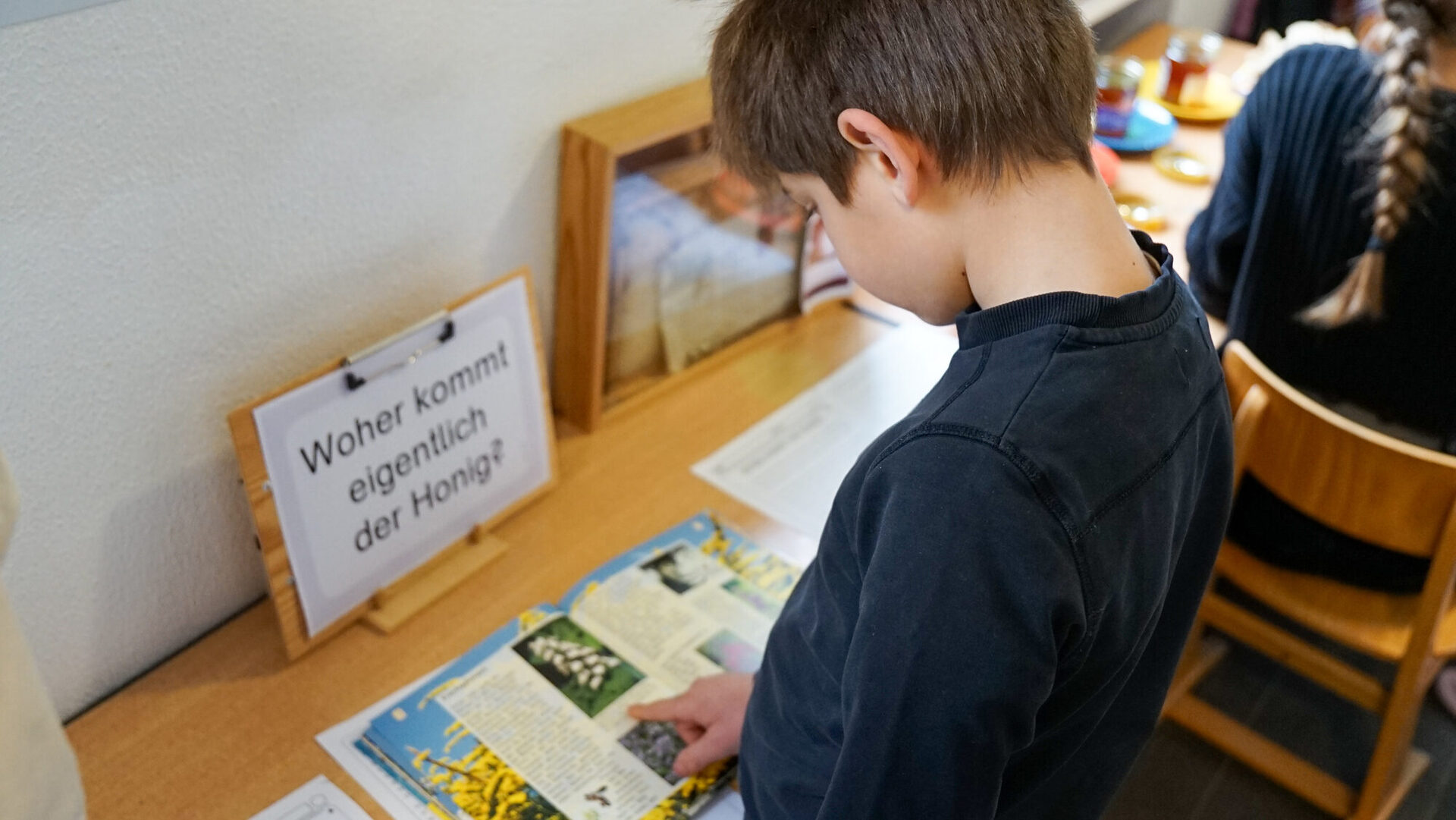 Auch in den Klassenräumen drehte sich alles um die Wild- und Honigbienen: Anhand von Arbeitsmaterialien erarbeiteten die Kinder eigenständig weitere Inhalte und durften verschiedene Honigsorten verkosten. Ergänzend dazu machte das Team von „Natur on Tour“ aus Kirchhellen mit Fühlkästen, Lupen, Tierpräparaten und Fellen die heimische Flora und Fauna erlebbar. Das Projekt wird von der Kreisjägerschaft Bottrop betreut und soll Kinder und Jugendliche spielerisch für Natur, Landwirtschaft und regionale Produkte begeistern.