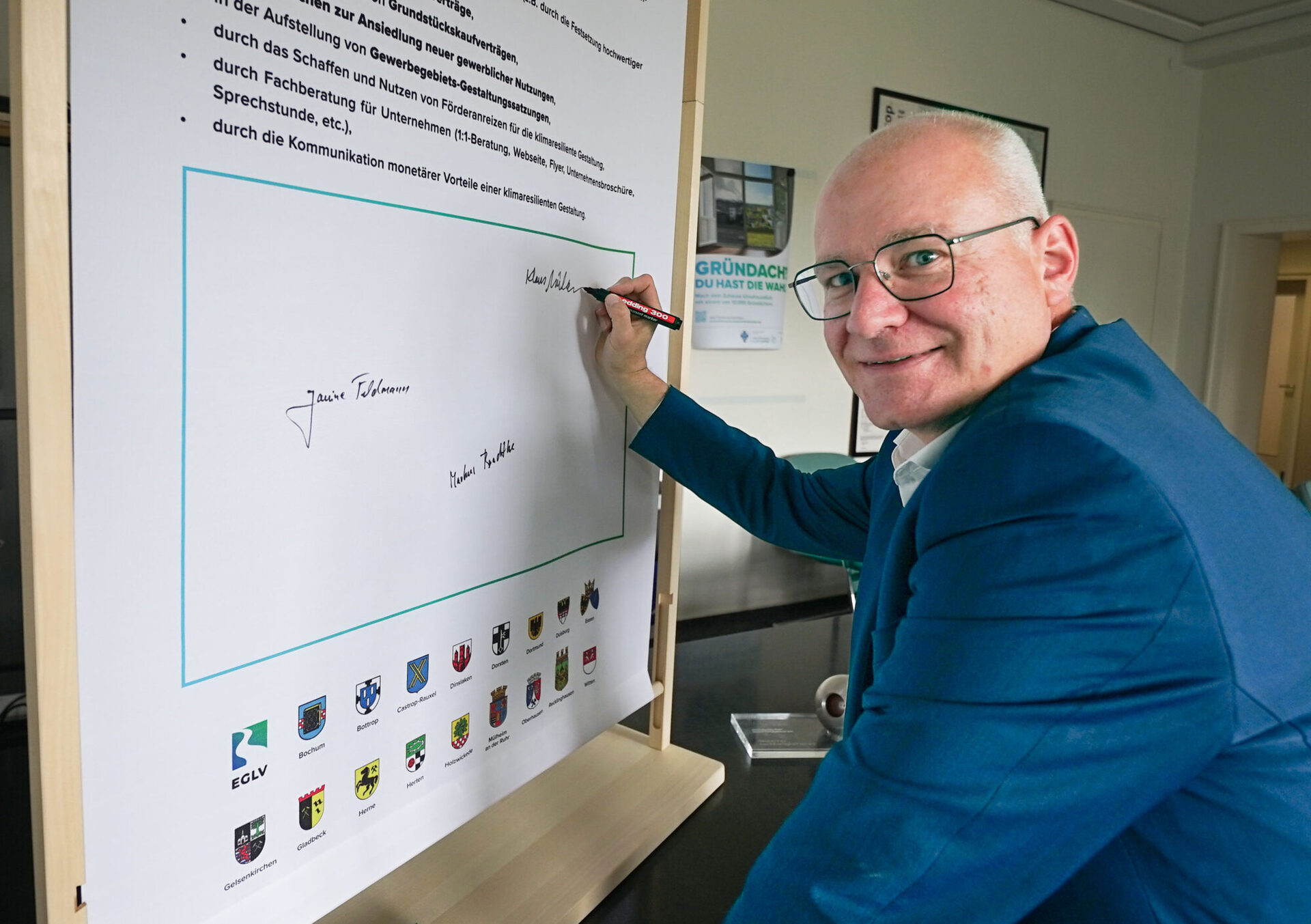 Kommunen in der Zukunftsinitiative Klima.Werk unterzeichnen Positionspapier. Auf Standards für klimaresiliente Gewerbeflächen verständigt