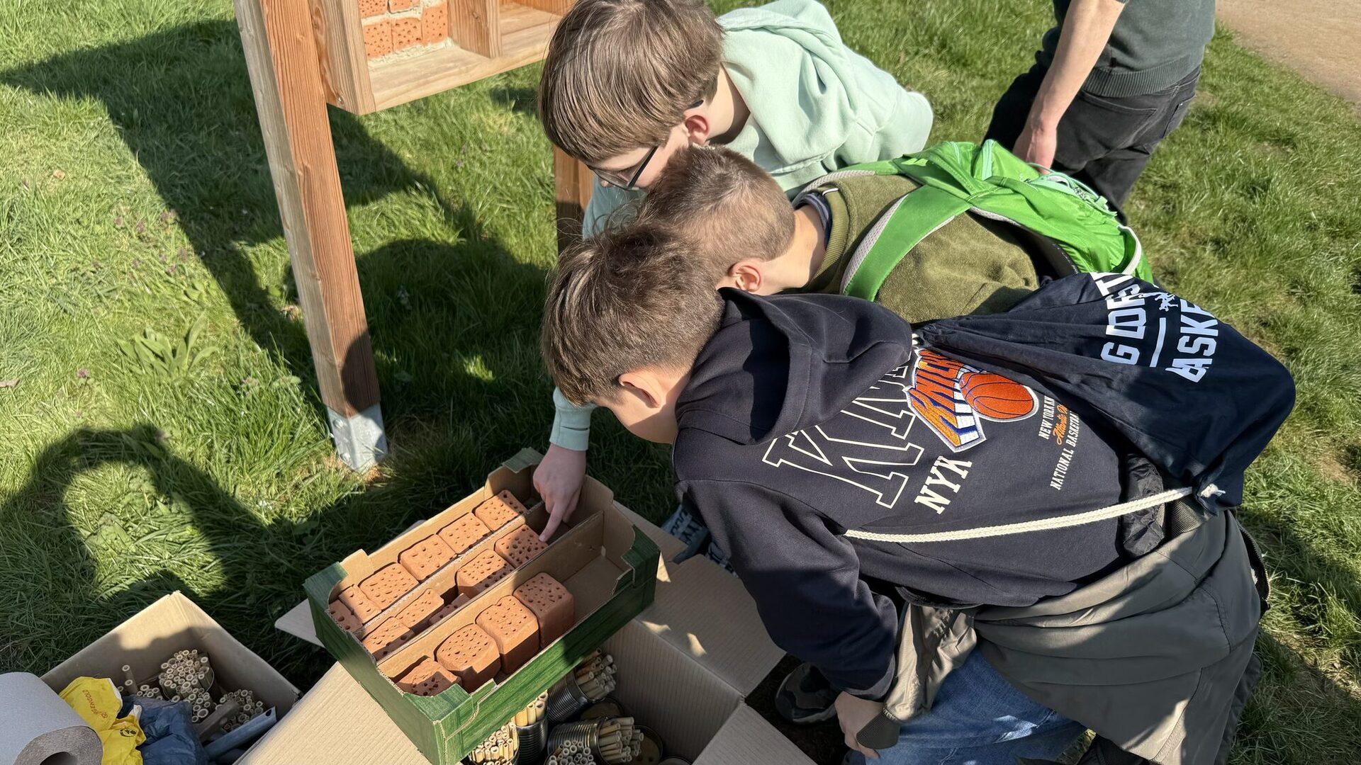 Mit großem Engagement setzen sich die Schülerinnen und Schüler der vierten Klassen der Gregorschule für den Schutz der biologischen Vielfalt ein. Im Rahmen eines Projekts zur Förderung der Artenvielfalt haben die Kinder nun gemeinsam eine Nistwand für Wildbienen bestückt und damit einen wichtigen Beitrag zum Artenschutz geleistet.