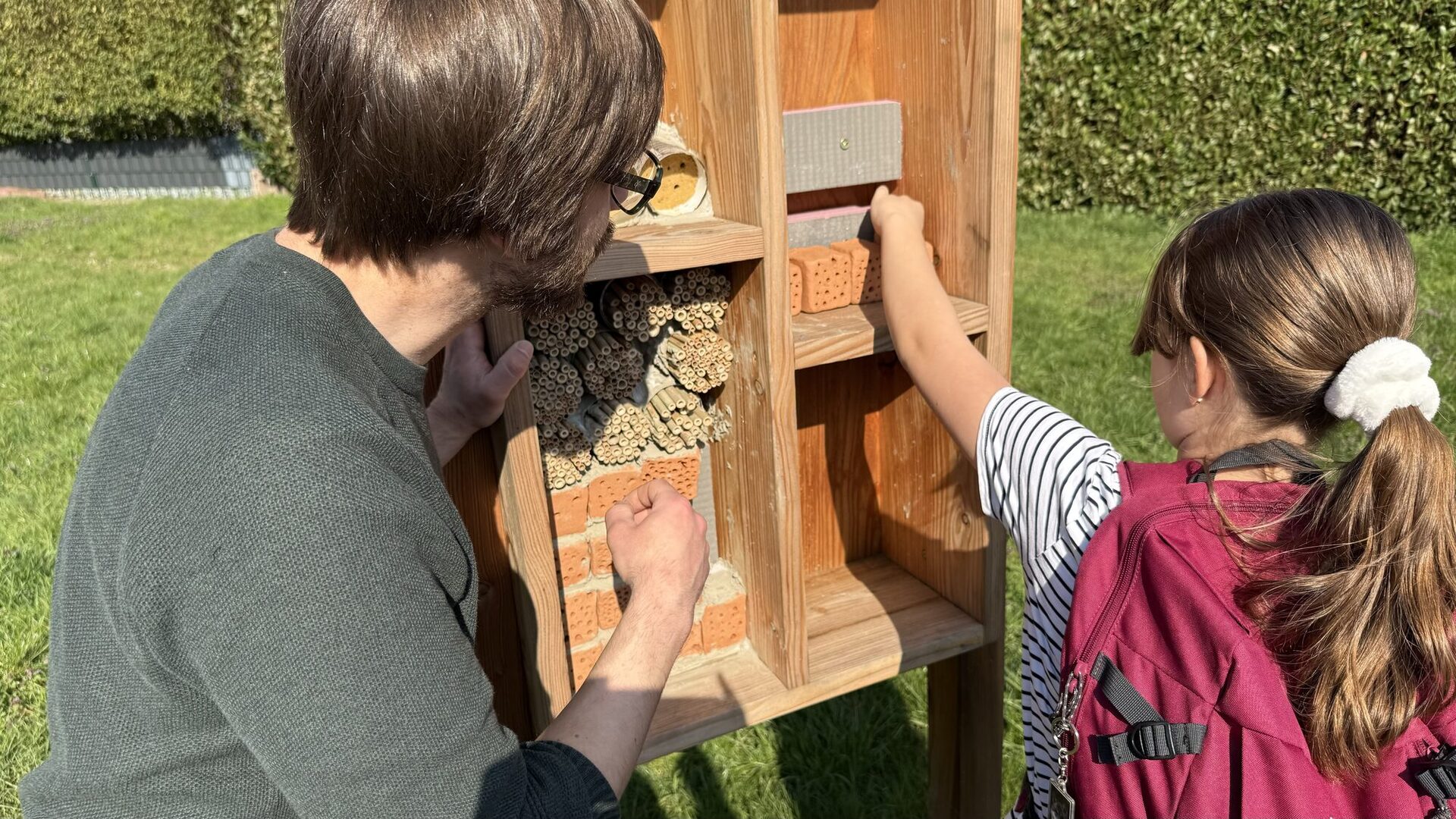 Bereits im vergangenen Jahr startete die Aktion mit einem Projekttag im September. Dabei erhielten die Schülerinnen und Schüler spannende Einblicke in die Welt der Wildbienen. Der Wildbienenexperte Volker Fockenberg vermittelte in einem altersgerechten Vortrag grundlegendes Wissen über die Biologie der Tiere, ihre unterschiedlichen Lebensweisen sowie die Ursachen für den Rückgang vieler Arten – insbesondere den Verlust geeigneter Lebensräume. Gleichzeitig zeigte er auf, wie künstliche Nisthilfen dazu beitragen können, Wildbienen zu schützen.