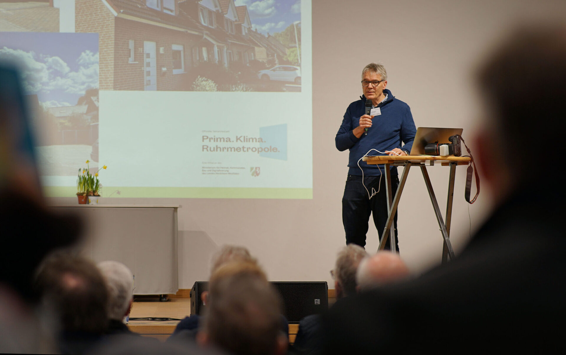 Den Technischen Beigeordnete Klaus Müller freut das große Interesse. „Wir brauchen privates Engagement. Nur mit Politik und Verwaltung allein bekommen wird den klimagerechten Stadtumbau nicht hin“, sagte er. Er forderte die Zuhörer auf, die kostenlosen Beratungsangebote des Sanierungsmanagements zu nutzen. Hinweise zu Einsparpotentialen, Förderprogrammen, Finanzierungsmöglichkeiten und Prozessorganisation liefern eine solide Grundlage, konkrete Sanierungen optimal umzusetzen.