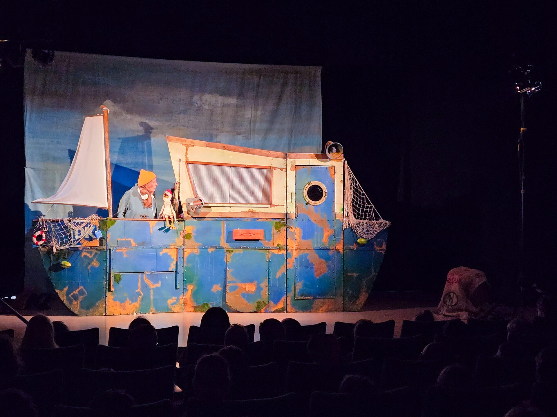 Den Auftakt bildete das Theaterstück Fiona und das Meerwunder des Theaters con Cuore aus Schlitz. Die Geschichte wird von einem alten Fischer erzählt, der auf seinem Kutter lebt und seine Nichte Fiona aus der Stadt über das Wochenende zu Besuch hat. Begeistert von der Vorstellung, mit ihrem Onkel große Fische zu fangen, begleitet sie ihn hinaus aufs Meer. Doch statt prall gefüllter Netze mit Fischen zeigt ihr Onkel Kurti, dass er nur noch Müll aus dem Wasser fischt – eine traurige Realität, die er seiner Nichte näherbringen möchte. Um Fiona die Tragweite der Meeresverschmutzung zu verdeutlichen, erzählt er ihr die Seemanns-Sage von einem Fisch, dessen Körper von Glasscherben durchzogen ist und der sich von den anderen Meeresbewohnern fernhält. Doch der kleine Fisch Dommy und das Seepferdchen Sandy beschließen, das Unmögliche zu wagen und diesem Fisch zu helfen – ein kleines Wunder in den Tiefen des Meeres. Die Puppen und Requisiten des Stücks wurden aus recyceltem Material gefertigt – so wurde der kleine Fisch Dommy aus einer alten Plastikflasche gestaltet, das Seepferdchen Sandy aus einer Sprühdose. Die Kinder hatten im Anschluss die Gelegenheit, die Figuren aus nächster Nähe zu betrachten und sich mit der kreativen Umsetzung des Themas auseinanderzusetzen.