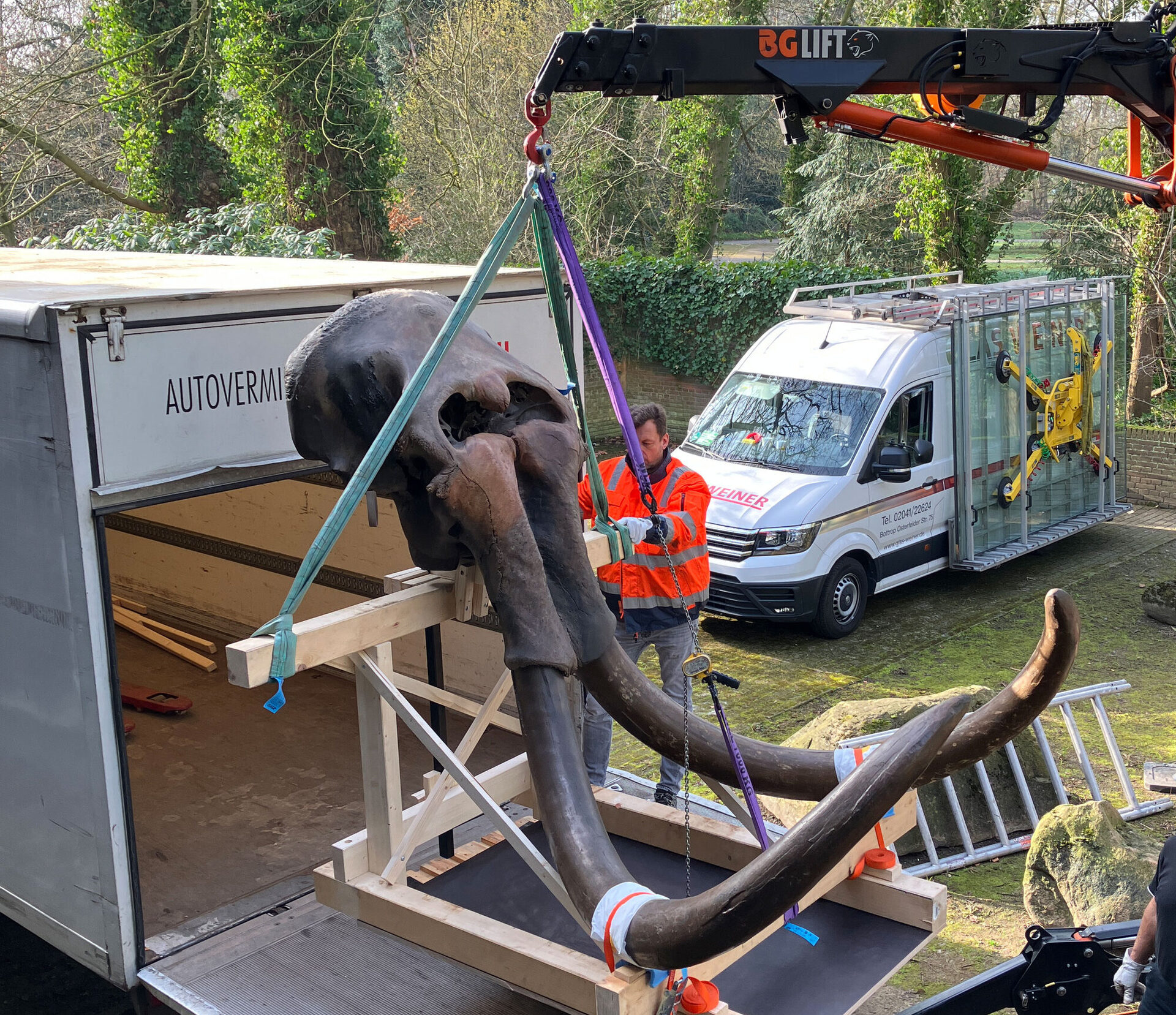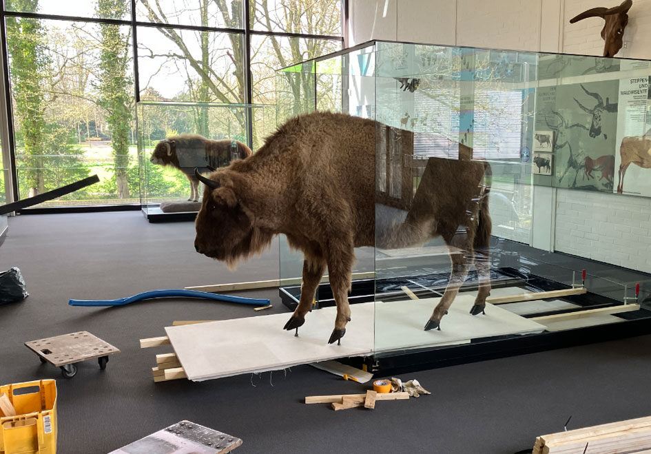Bis März kommenden Jahres werden der Schädel des Mammuts von Haltern, die Saiga-Antilope, die beiden Waldbisons (Dermoplastik und die Rekonstruktion des Skeletts aus Gladbeck), der männliche Höhlenbär sowie die Rekonstruktion des Skeletts des Elchs von Dinslaken präsentiert. „Alle Leihobjekte ermöglichen es uns, ein Bild von den Tierarten zu rekonstruieren, die während der Eiszeit in dieser Region zusammenlebten“, erklärt Kevrekidis die Besonderheiten der Bottroper Sammlung. So sei der Schädel des Mammuts von Haltern einer der größten und am besten erhaltenen Mammutschädel Europas.