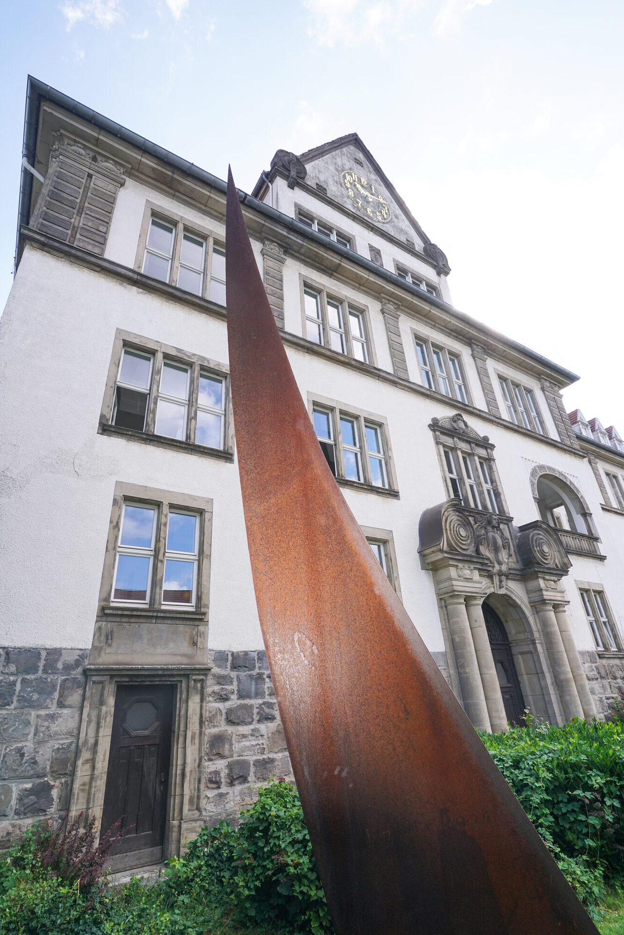 Vor dem Eingang des Kulturzentrums an der Blumenstraße empfängt die Skulptur „Nr. 150“ der international renommierten Künstlerin Helga Natz seit dem Jahr 2000 die Besucher.
