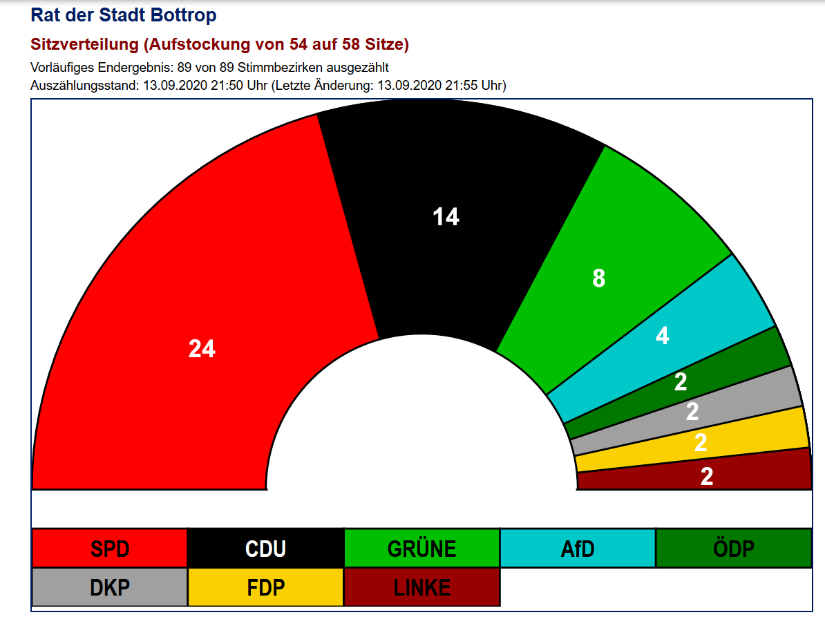 Vorläufiges Endergebnis der Kommunalwahl 2020 in Bottrop