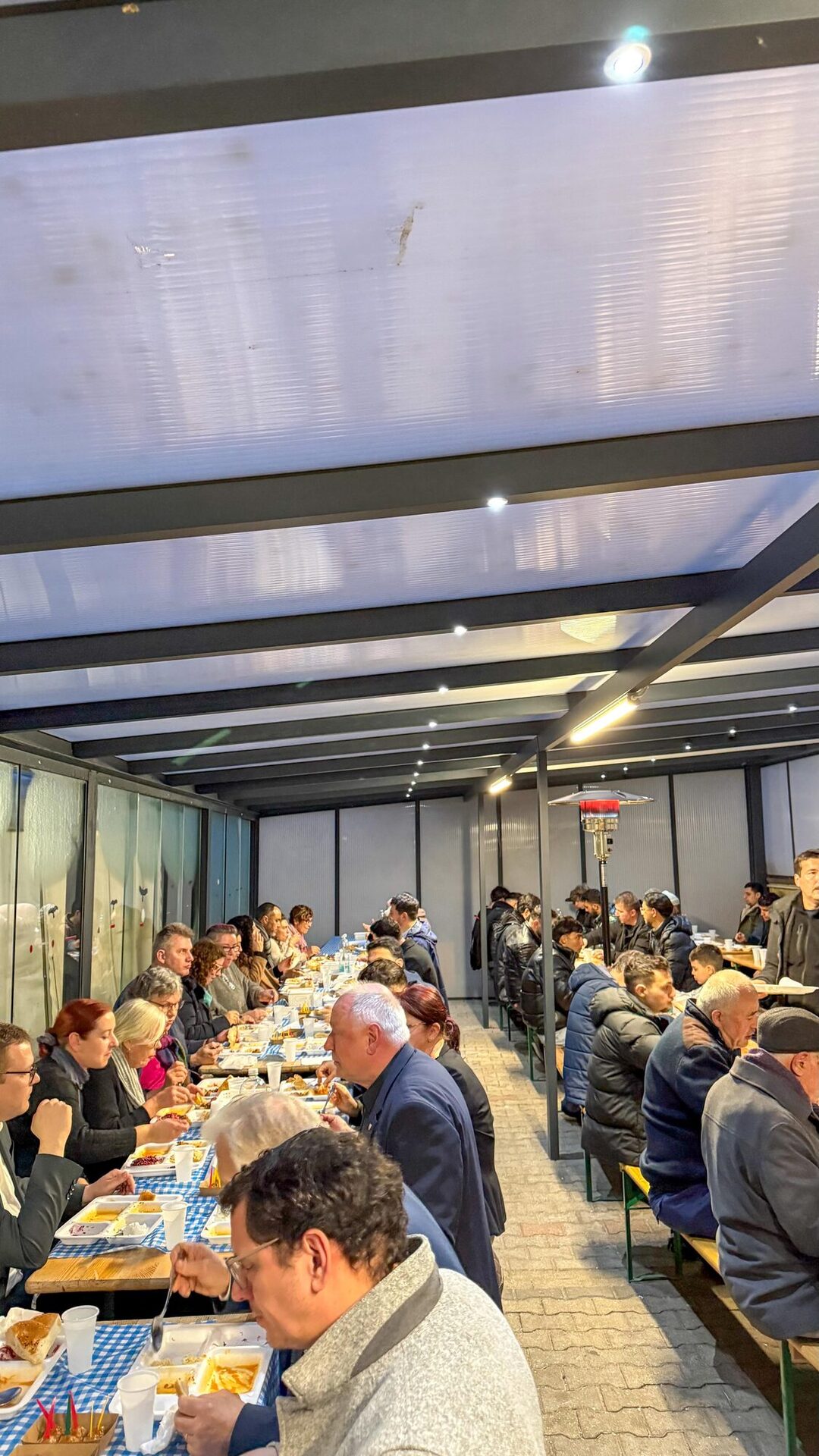 Vor dem Einnehmen des traditionellen Mahls begrüßte der Vereinsvorsitzende Halil Demir die etwa 350 Gäste und betonte, wie wichtig diese Begegnung sei. „Ein gutes Miteinander, das wir hier in Bottrop haben, ist uns sehr wichtig. Deshalb laden wir auch gerne alle Nachbarinnen und Nachbarn ein.“ Den Begriff der Nachbarschaft griff auch Oberbürgermeister Matthias Buschfeld bei seiner anschließenden Rede auf. „Dass Nachbarschaft hier so gut gelebt wird, dafür stehen wir ein in unserer Stadt.“ Er bedankte sich dafür, dass auch Menschen aus den Flüchtlingsunterkünften, die oft alleine ohne Familie sind, zum offenen Fastenbrechen eingeladen sind und dieses Angebot gerne und zahlreich annehmen.