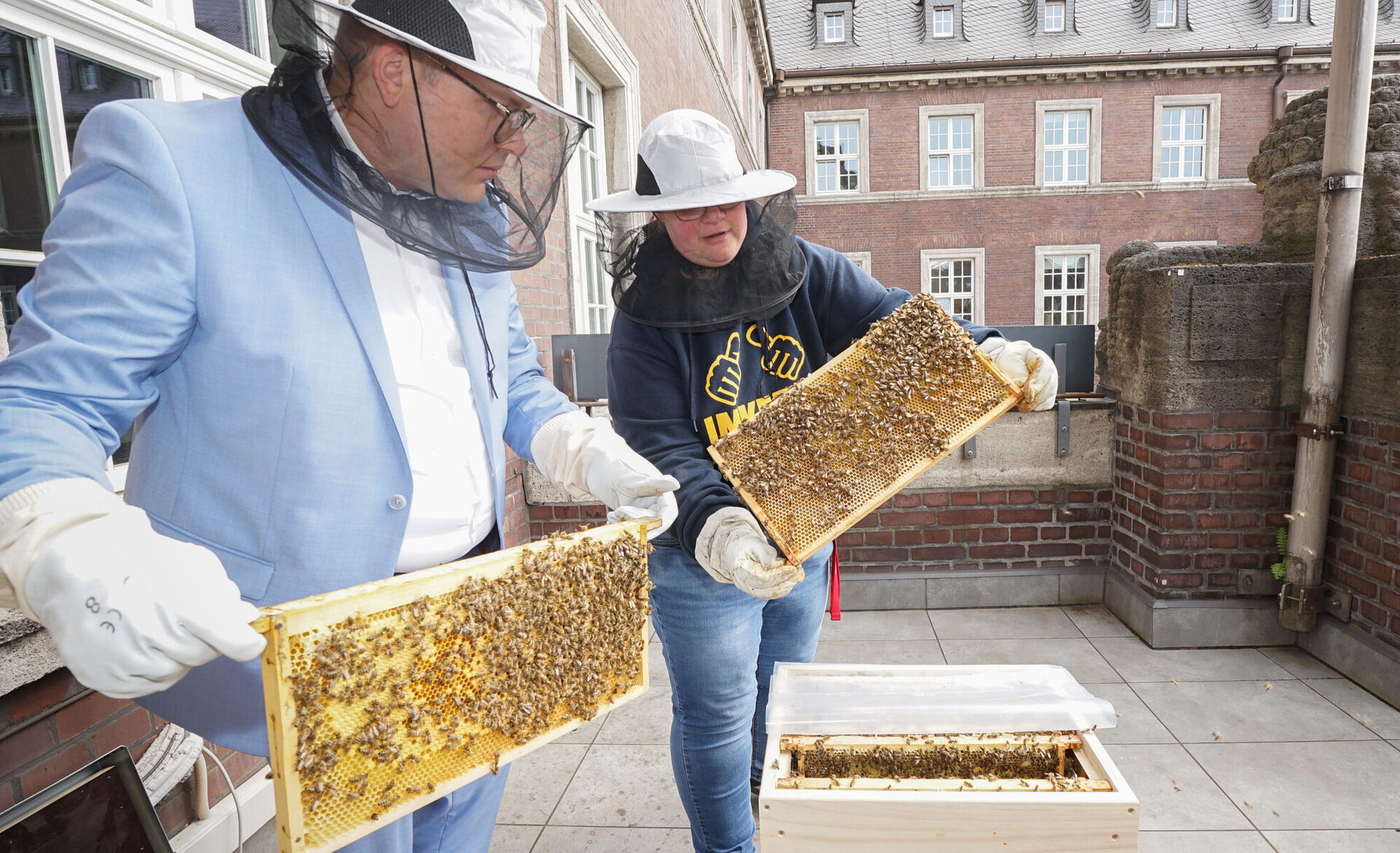 Oberbürgermeister Matthias Buschfeld hofft auf ergiebige Honigernte