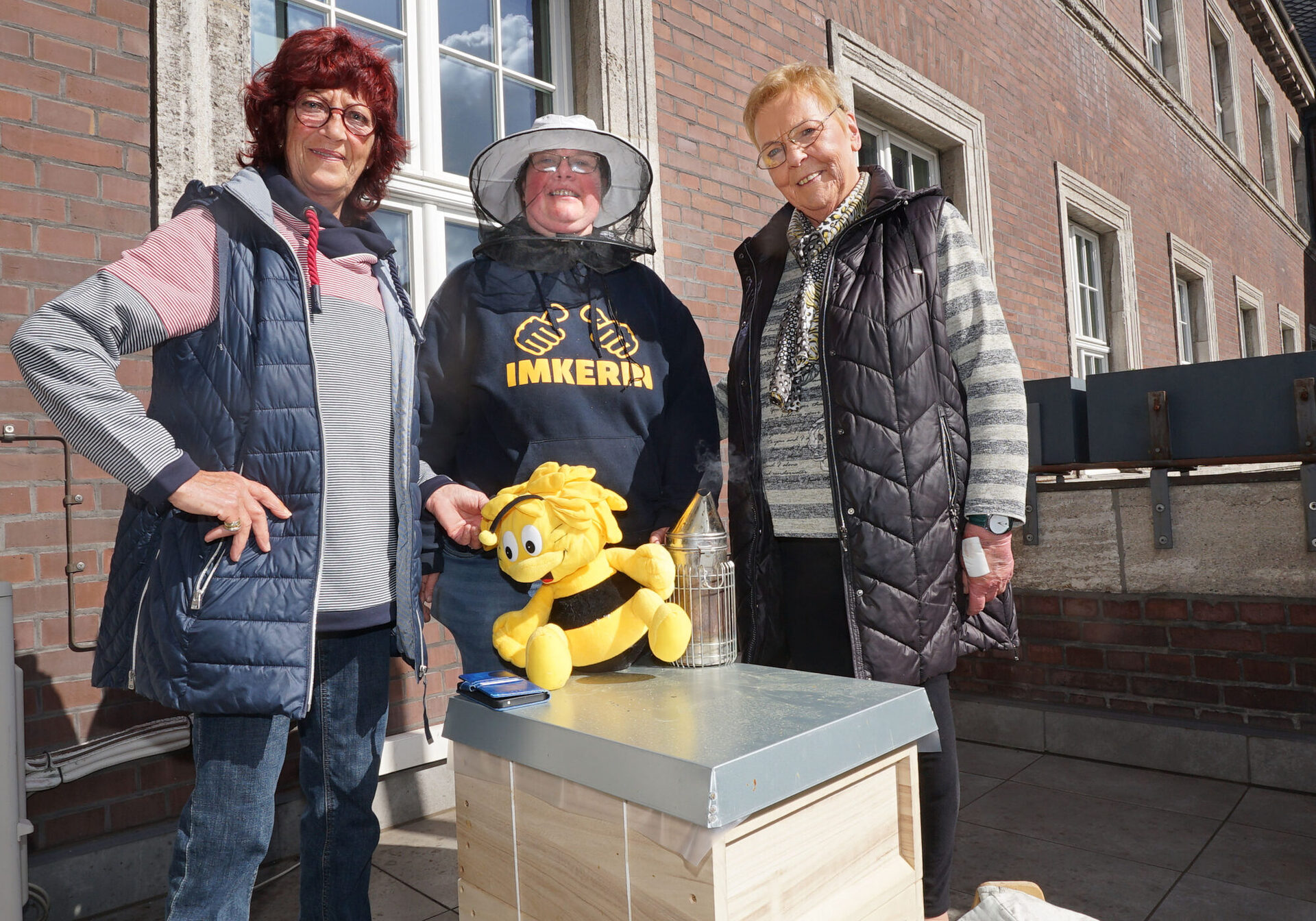 Am Rathaus brummt und summt es. Auf einem Balkon vor dem Bürofenster von Oberbürgermeister Matthias Buschfeld hat ein Bienenvolk eine neue Heimat gefunden. Buschfeld ist von seinen neuen Büronachbarn beeindruckt. „Es ist faszinierend, was man über Bienen alles lernen kann“, sagt er. Mit speziellen Handschuhen und geschlossener Imkermütze heißt er die „neuen Mitarbeiter“ willkommen.