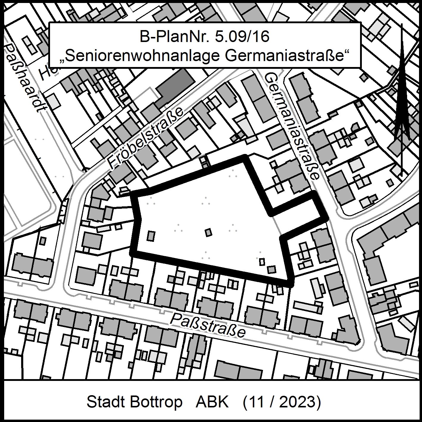 - Für den Bereich des Flurstückes 453 Flur 51 der Gemarkung Bottrop ist der Bebauungsplan Nr. 5.09/16 „Seniorenwohnanlage Germaniastraße“ aufzustellen.