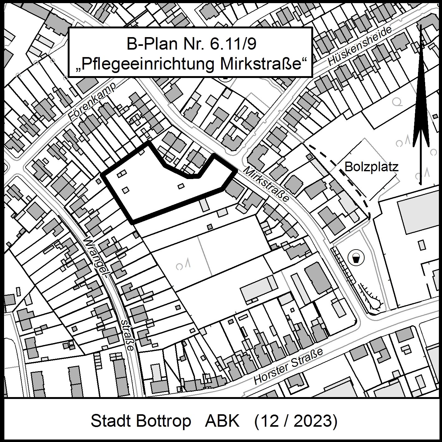 - Für den Bereich des Flurstücks 386 in Flur 95 der Gemarkung Bottrop ist der Bebauungsplan Nr. 6.11/9 „Pflegeeinrichtung Mirkstraße“ aufzustellen