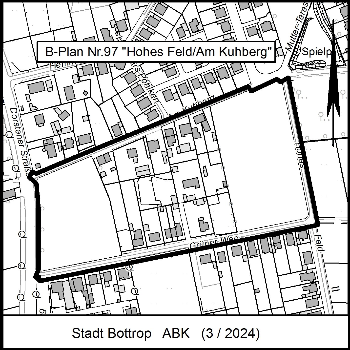 - Für die Flächen zwischen Dorstener Straße, Am Kuhberg, Hohes Feld und Grüner Weg ist der Bebauungsplan Nr. 97 „Hohes Feld / Am Kuhberg“ aufzustellen.