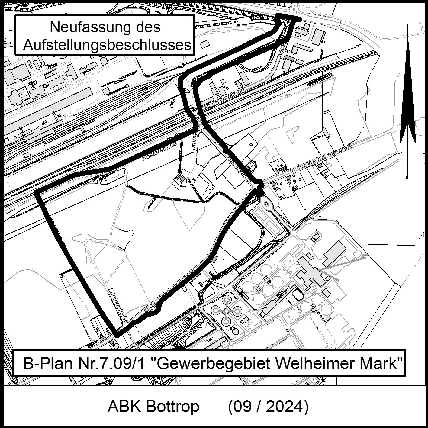 - Für einen Bereich im Ortsteil Welheim, westlich der Straße Haverkamp, nördlich der Straße In der Welheimer Mark, östlich der ehemaligen Kohle-Öl-Anlage und südlich der Kokerei ist der Bebauungsplan Nr. 7.09/1 „Gewerbegebiet Welheimer Mark“ aufzustellen.