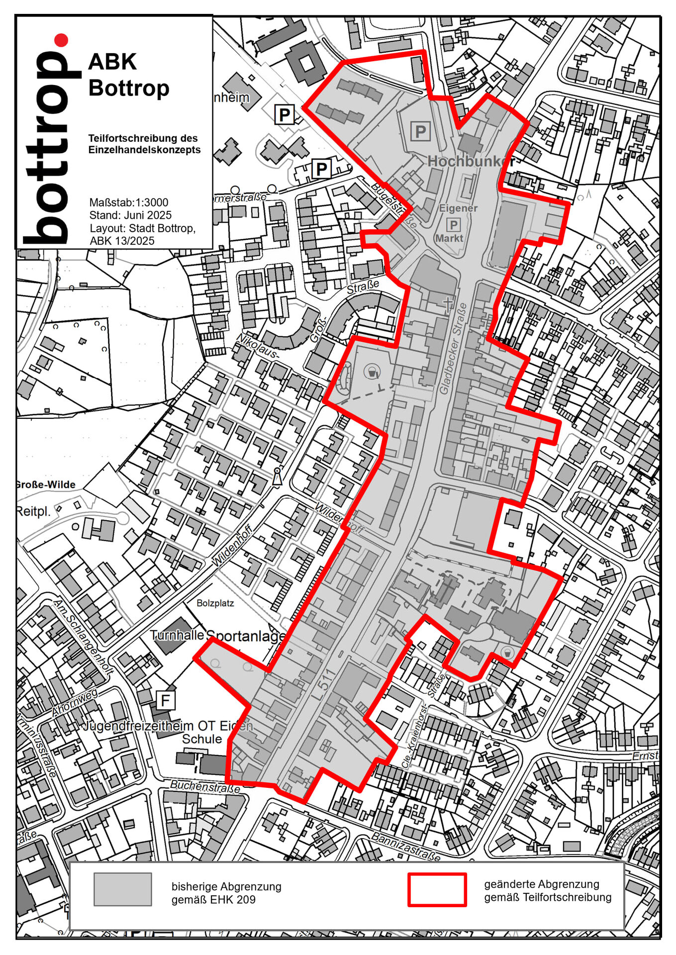 · Der Entwurf zur Teilfortschreibung des Einzelhandelskonzeptes der Stadt Bottrop – Änderung der Abgrenzung des zentralen Versorgungsbereiches Eigen ist öffentlich auszulegen.