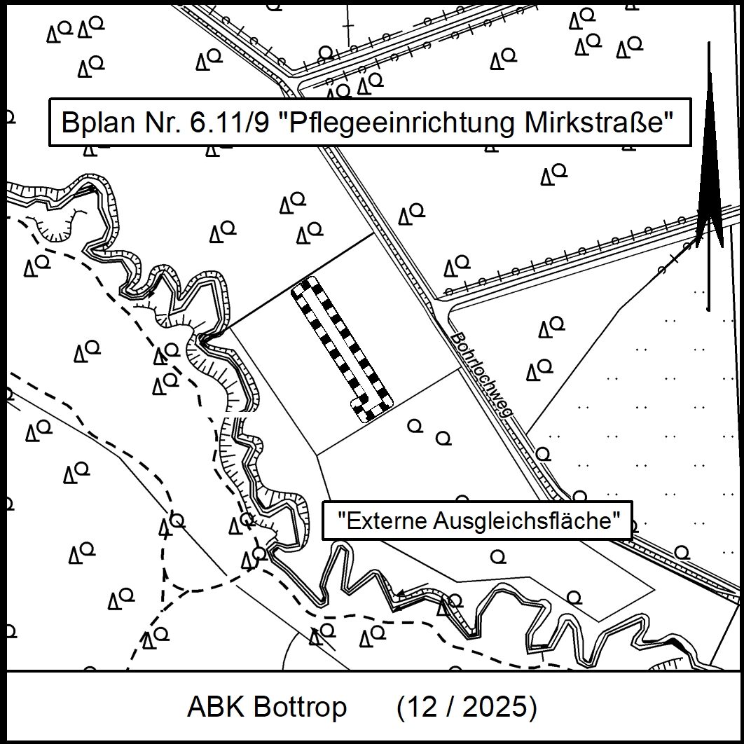 Der vom Rat der Stadt Bottrop als Satzung beschlossene Bebauungsplan Nr. 6.11/9 „Pflegeeinrichtung Mirkstraße“ wird hiermit gemäß § 10 (3) BauGB und § 7 Gemeindeordnung NRW sowie § 29 Hauptsatzung der Stadt Bottrop – in ihrer jeweils gültigen Fassung – ortsüblich bekannt gemacht. Der räumliche Geltungsbereich ist im folgenden Übersichtsplan gekennzeichnet.