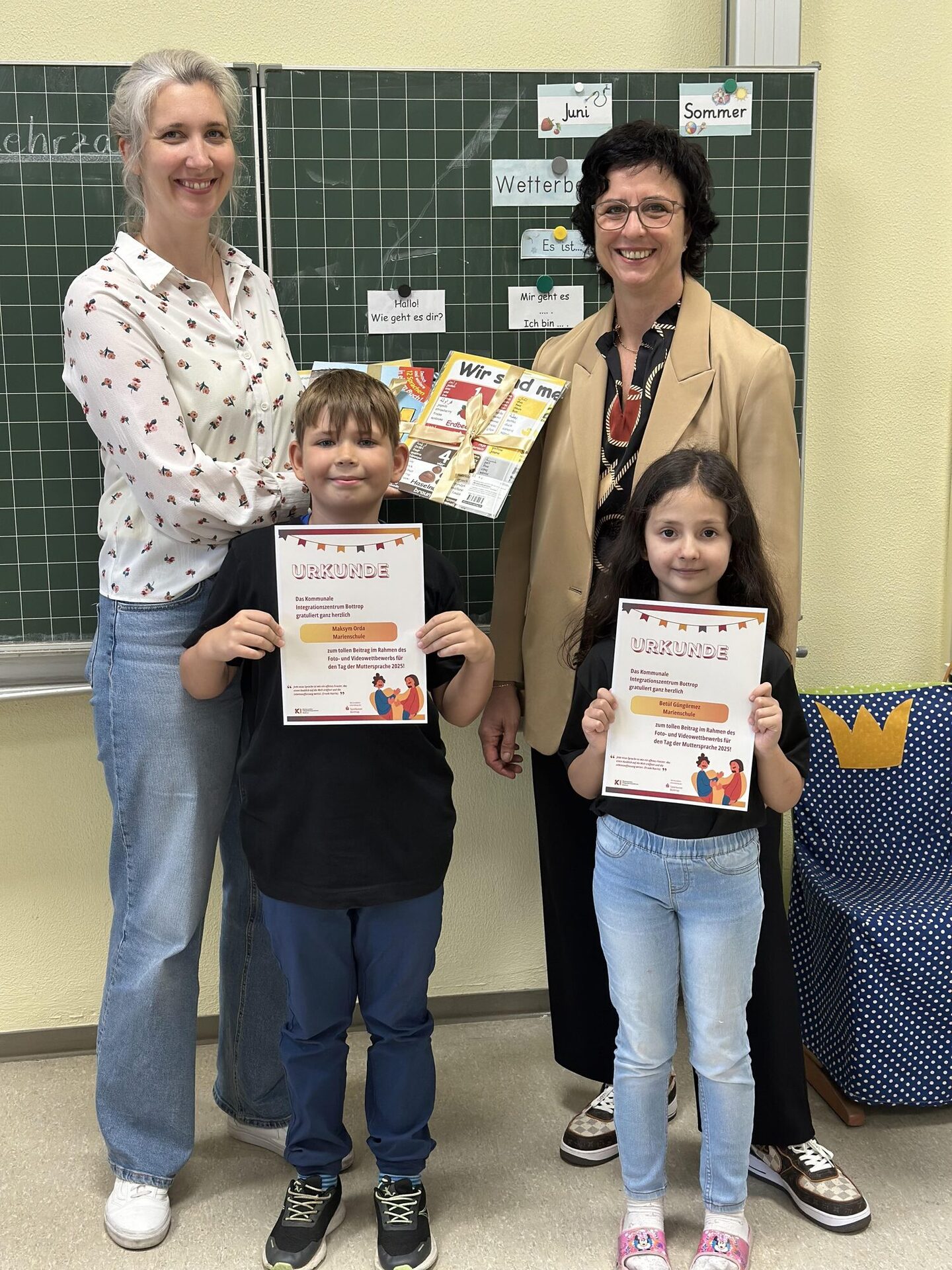 Anlässlich des Internationalen Tags der Muttersprache hat das Referat Migration – Kommunales Integrationszentrum Bottrop alle Kinder und Jugendlichen der Stadt zu einem besonderen Foto- und Videowettbewerb unter dem Motto „Unsere Sprachen und Wir“ eingeladen. Ziel war es, die persönliche Bedeutung der eigenen Muttersprache kreativ in Szene zu setzen – ob durch Fotos, Collagen oder kurze Videoclips. Die Resonanz war so überwältigend, dass sich das Referat Migration – Kommunales Integrationszentrum dazu entschloss, nicht nur einen Gewinner auszuzeichnen, sondern allen Teilnehmenden eine Urkunde sowie kleine Geschenke als Anerkennung zu überreichen.