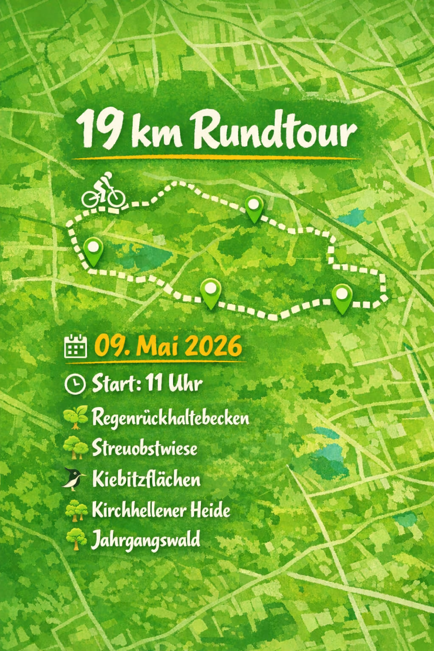 Die Ortsgruppe Kirchhellen von Aufbruch Fahrrad Bottrop lädt im Rahmen der regionalen Biodiversitätswochen der Zukunftsinitiative Klima.Werk (EGLV) zu einer geführten Radtour mit dem Motto „Artenvielfalt“ ein. Wir starten um 11 Uhr am Brezelbruder in Bottrop-Kirchhellen. Die knapp 19 Kilometer lange Strecke endet gegen 13 Uhr am Rotthoffs Hof, wo im Anschluss die Möglichkeit zu einem Imbiss besteht.