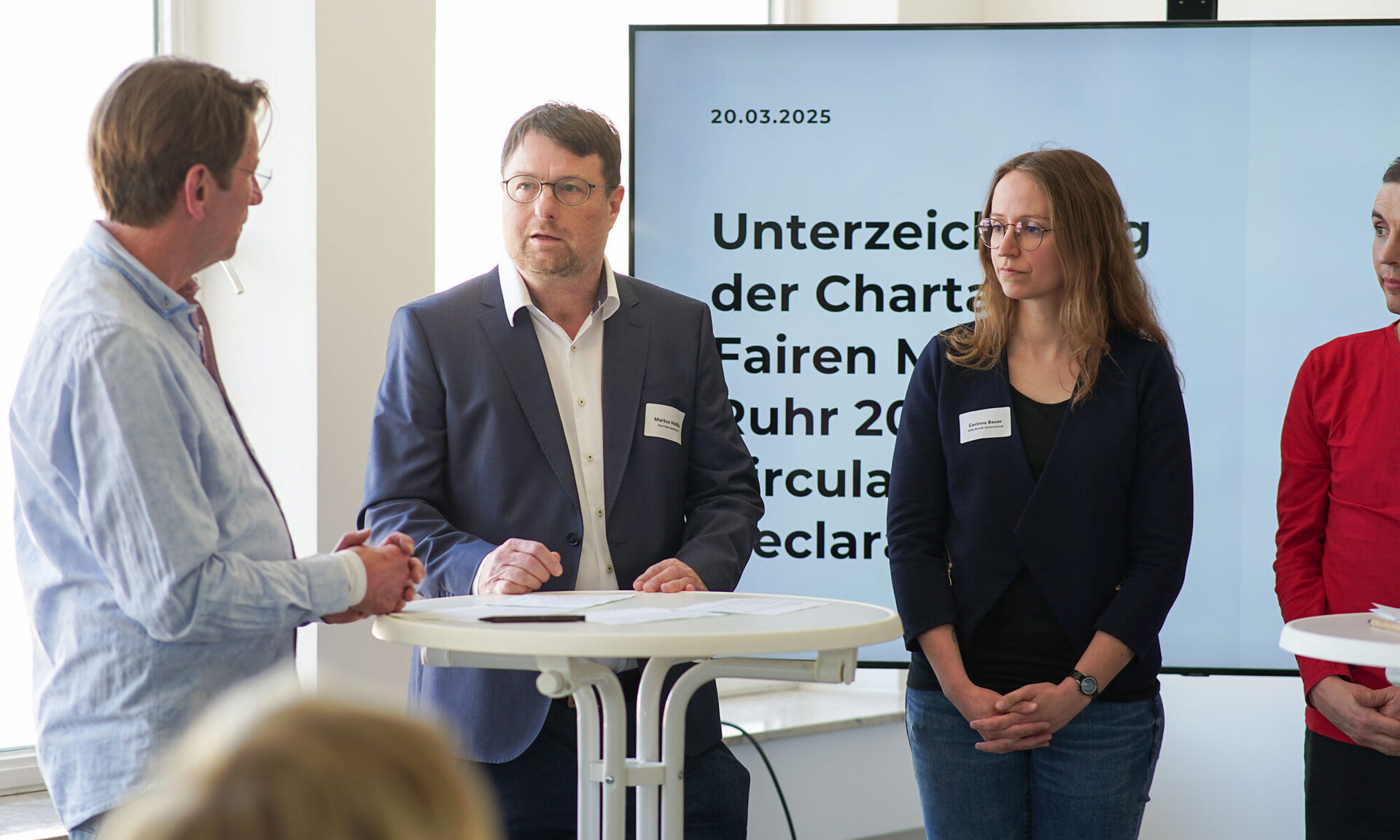 Ein weiterer Meilenstein folgt nun mit der Unterzeichnung der Charta der Fairen Metropole Ruhr 2030. Diese ruft Städte, Gemeinden und Kreise auf, Verantwortung für menschenwürdige Arbeitsbedingungen und nachhaltiges Wirtschaften zu übernehmen.