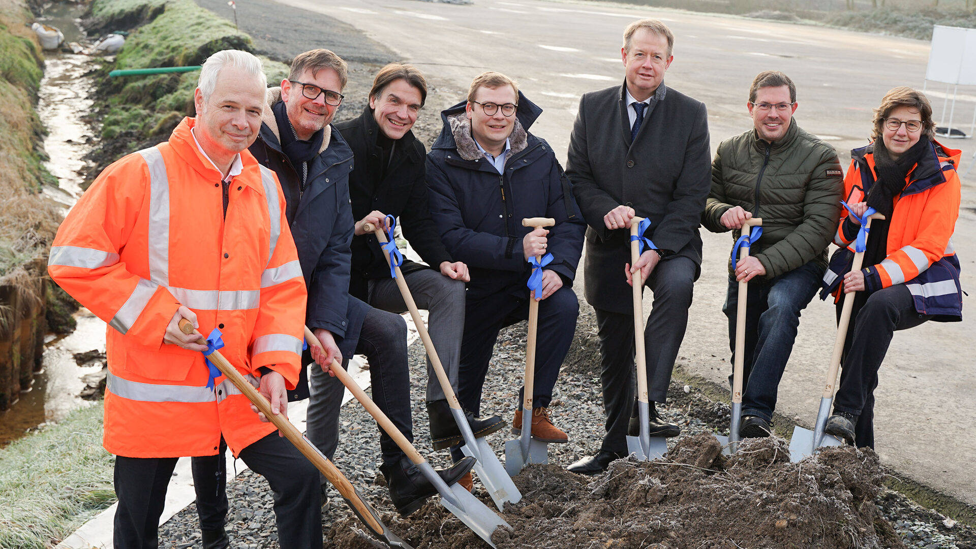 An dem ersten Spatenstich nahmen neben Uli Paetzel (Vorstandsvorsitzender der Emschergenossenschaft) auch Oberbürgermeister Matthias Buschfeld, Michael Kalthoff (Vorstandsvorsitzender der RAG) und Gernot Pahlen (Geschäftsführer der Freiheit Emscher Entwicklungsgesellschaft) teil.