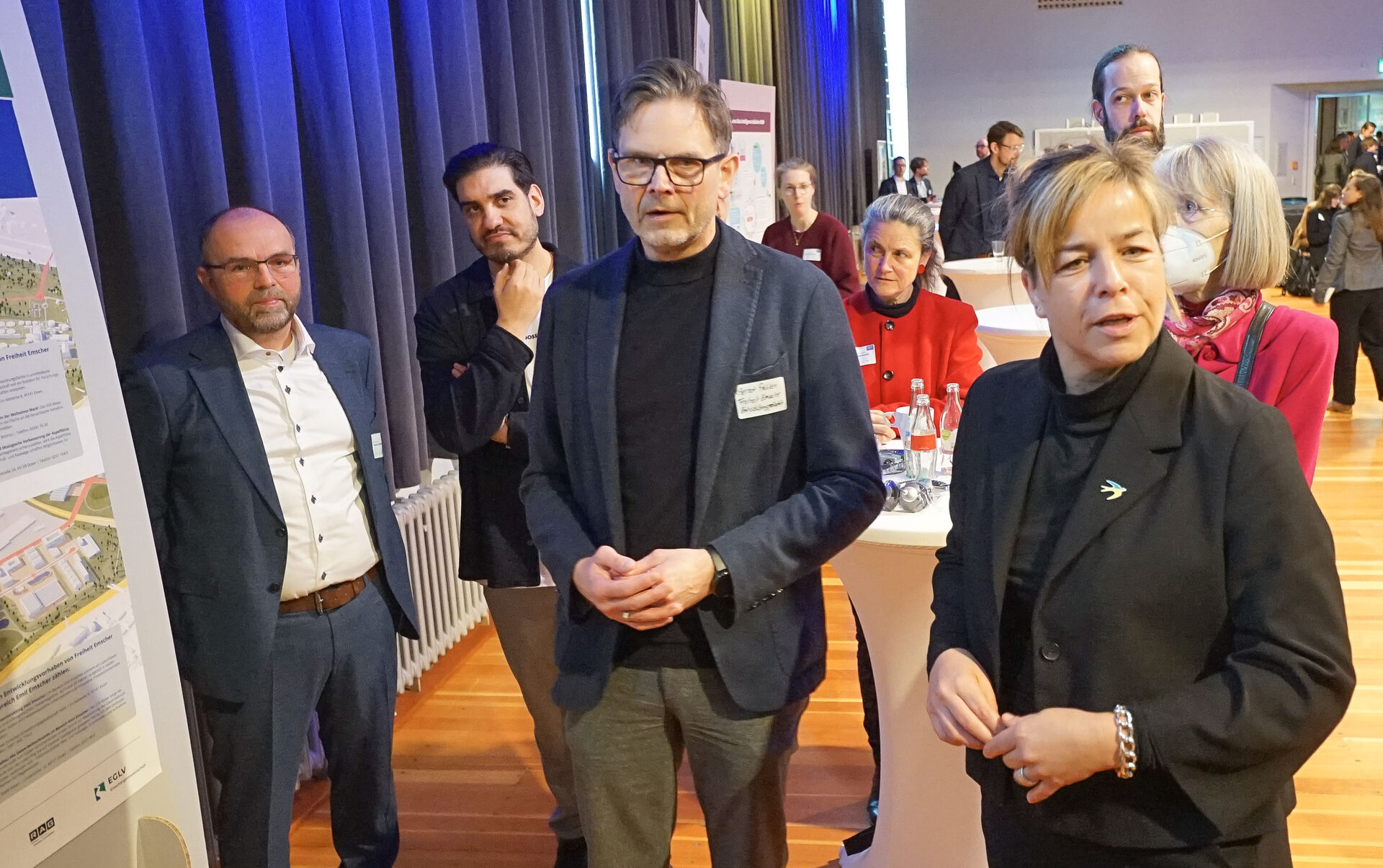 NRW-Ministerin Neubaur betonte vor den Konferenzteilnehmerinnen und -teilnehmern den beispielhaften Transformationsprozess, bei dem ehemalige Bergbauflächen für Zukunftsbranchen erschlossen werden. Gleichzeitig sei das Projekt exemplarisch für die interkommunale Zusammenarbeit von Ruhrgebietsstädten.