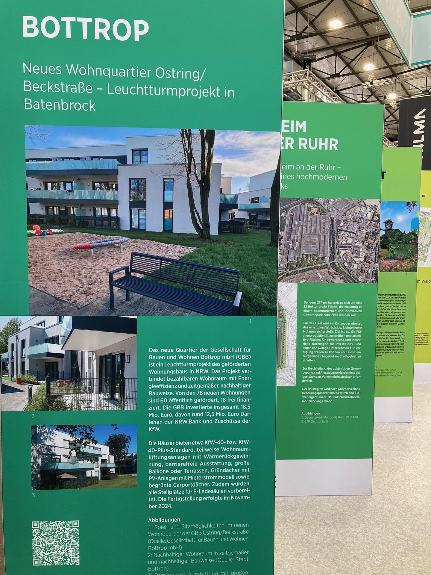 Der Fachbereich Stadterneuerung und das Stadtplanungsamt der Stadt Bottrop präsentierten auf der Messe mit Stolz zwei wegweisende Projekte: das Wohnquartier Ostring / Beckstraße und das Projekt Freiheit Emscher. Beide Projekte stießen auf großes Interesse und zeigten innovative Ansätze für eine nachhaltige Stadtentwicklung.