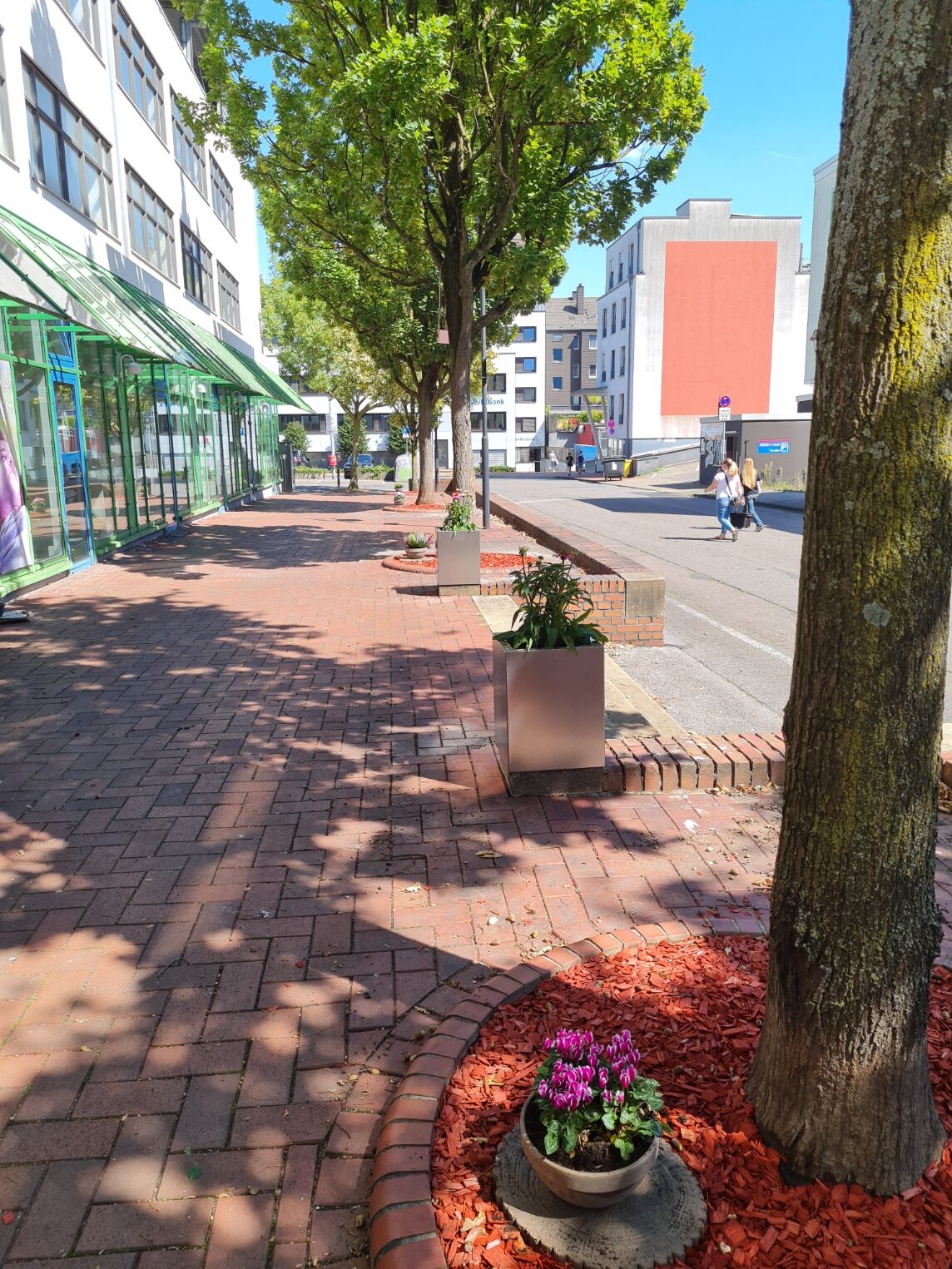 Darüber hinaus wurde eine neue Einfassung für den großen Baum angelegt. Zehn ehrenamtliche Helfer und Mitarbeiter des Fachbereichs Umwelt und Grün haben gemeinsam dazu beigetragen, unsere Innenstadt ein Stück schöner zu gestalten.