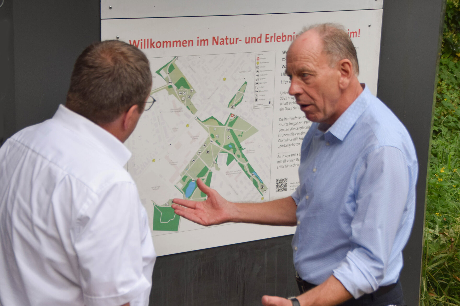 Der Park war für die Thementour des Ministers deswegen so interessant, weil hier durch die finanzielle Unterstützung des Landes Nordrhein-Westfalen und der Europäischen Union zahlreiche Maßnahmen umgesetzt werden konnten. Dabei wurden drei Handlungsfelder angegangen: