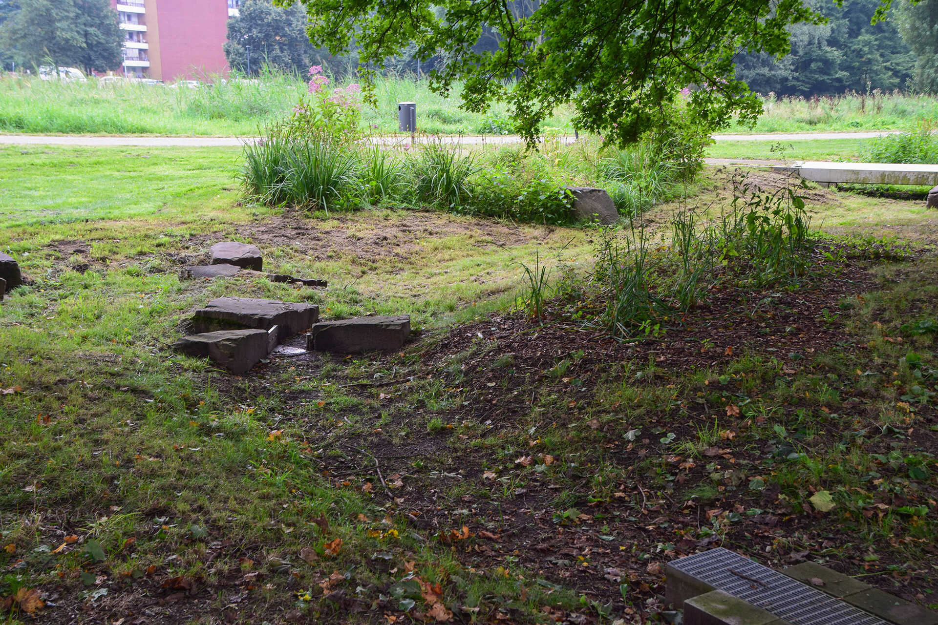 Es wurden Maßnahmen umgesetzt, die nicht nur das Regenwasser sinnvoll nutzen, sondern auch die Biodiversität fördern und das Mikroklima verbessern. So wurde ein zugewachsener Teich freigelegt und dieser wird nun ständig aus dem Regenwasser des Stadtteils unter anderem von der Hauptschule Welheim gespeist.