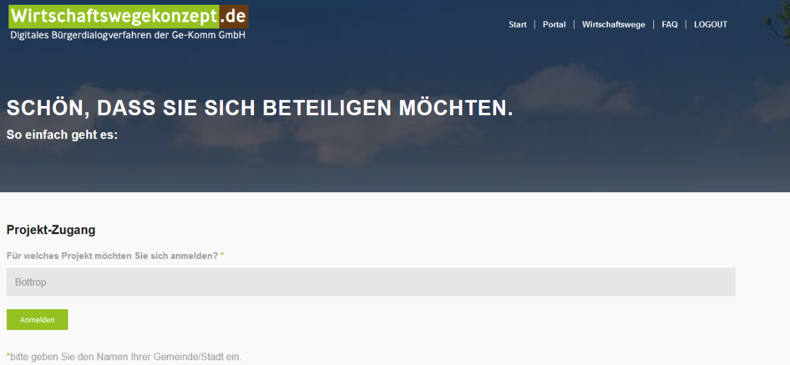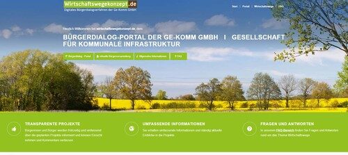 Dazu stellt die Ge-Komm GmbH das Bürgerdialogportal www.wirtschaftswegekonzept.de bereit. Alle interessierten Bürgerinnen und Bürger sind herzlich eingeladen, sich über dieses Portal an der Gestaltung des Wirtschaftswegekonzepts zu beteiligen.
