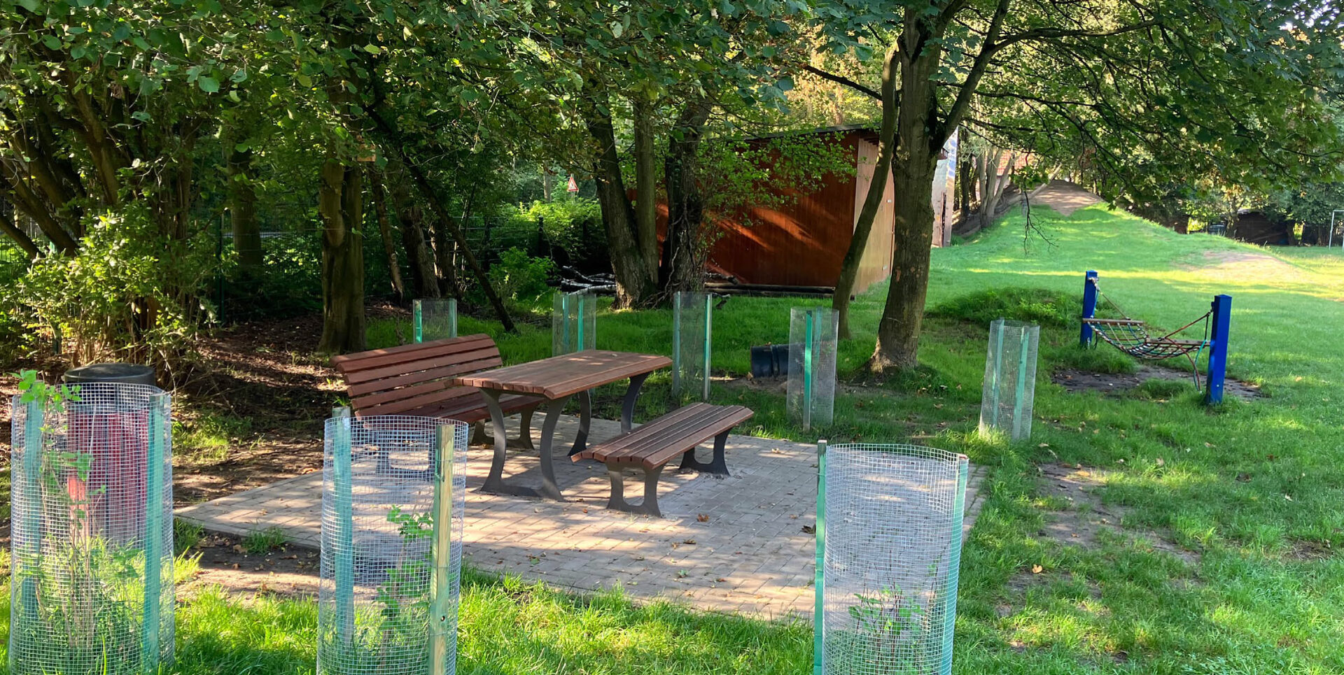 Zur Stärkung dieses niederschwelligen Freizeit- und Begegnungsortes wurde die Angebotsstruktur durch die Erneuerung einzelner Spielgeräte ausgebaut und durch den Einbau zusätzlicher Sitzbereiche neue Orte fürs Zusammenkommen realisiert. Durch die Erweiterung der Zielgruppe um Senior*innen und Demenzerkrankte – in Batenbrock zum bedeutenden Teil auch mit Migrationshintergrund, wird auch ihnen der Zugang zu kostenfreien Freizeit- und Bewegungsangeboten erleichtert. Dieses Ziel wurde auch im Rahmen des aus Mitteln des Batenbrockfonds geförderten Pilotprojekts „Tierbegegnungen für ältere Menschen (mit einer Demenzerkrankung)“ unterstützt.