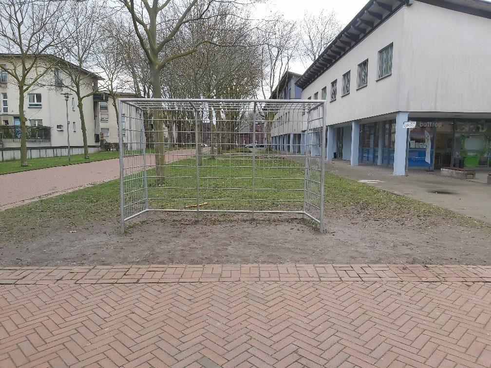 Auf dem „Roten Platz“, der Mitte des Quartiers Prosper III, wird ein Fußballtor aufgestellt, das von der Nachbarschaftsinitiative Prosper III gemeinsam mit dem Verein GemeinSinnschafftGarten e.V. betreut wird. Kinder und Jugendliche des Quartiers können zukünftig hier gemeinsam ihrem Hobby nachgehen.
